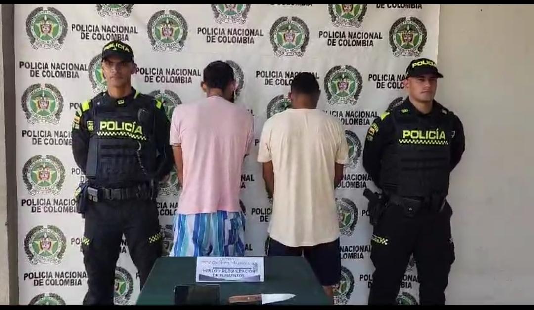 Los capturados identificados con los alias de “Sowil” de 27 años y alias “Yefri” de 23, junto a los elementos incautados, fueron dejados a disposición de la Fiscalía General de la Nación por el delito de hurto agravado y un juez de la República les dictó medida en centro carcelario.