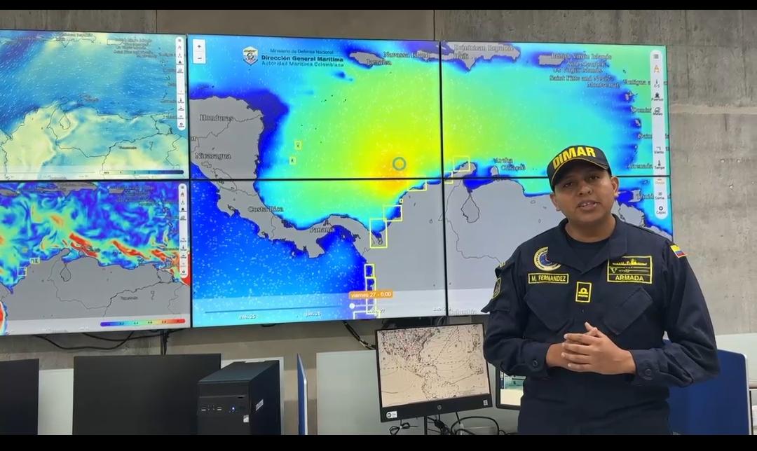 De acuerdo con la autoridad marítima, la situación obedece a la incidencia de un sistema frontal estacionario ubicado en el centro y occidente del mar Caribe, que está generando un fuerte gradiente de presión.