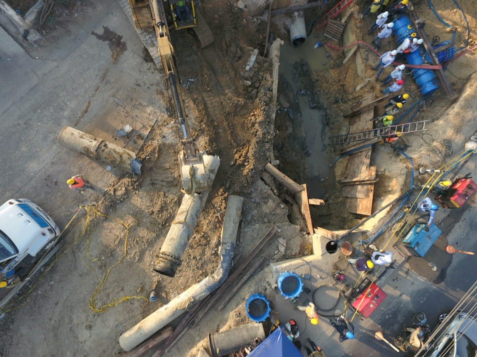 Dentro de estas actividades se destaca la obra de empalme en la urbanización Santa Clara, en donde luego de un intenso drenaje de agua acumulada en la red, se procedió con el corte y retiro del tramo de tubería existente para reemplazar el nuevo segmento que fortalecerá la infraestructura del sistema de acueducto. En esta zona se trabaja con el mayor cuidado porque convergen 2 redes de agua cruda y 3 de agua potable.