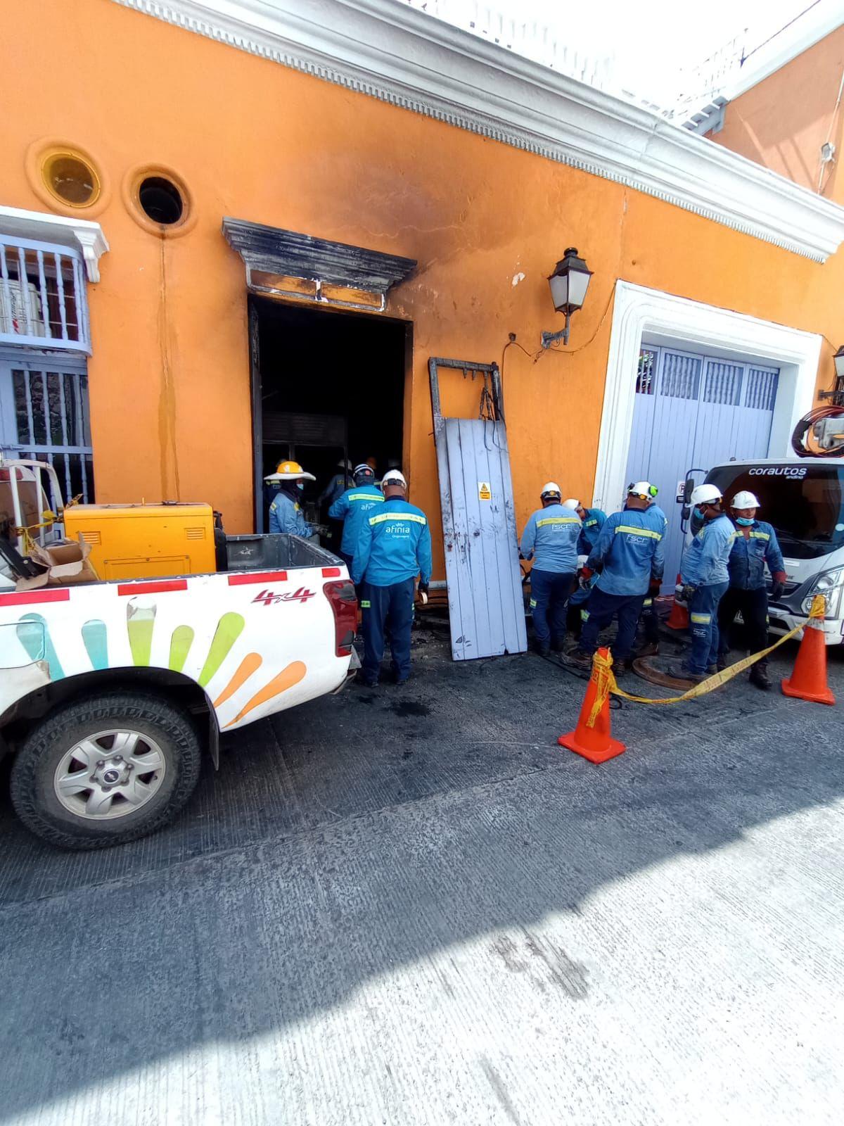 Personal técnico de Afinia continúa labores limpieza y recopilación de información para analizar y determinar las causas del incendio registrado anoche en la subestación de media tensión: Callejón Vargas, en el centro de Cartagena.