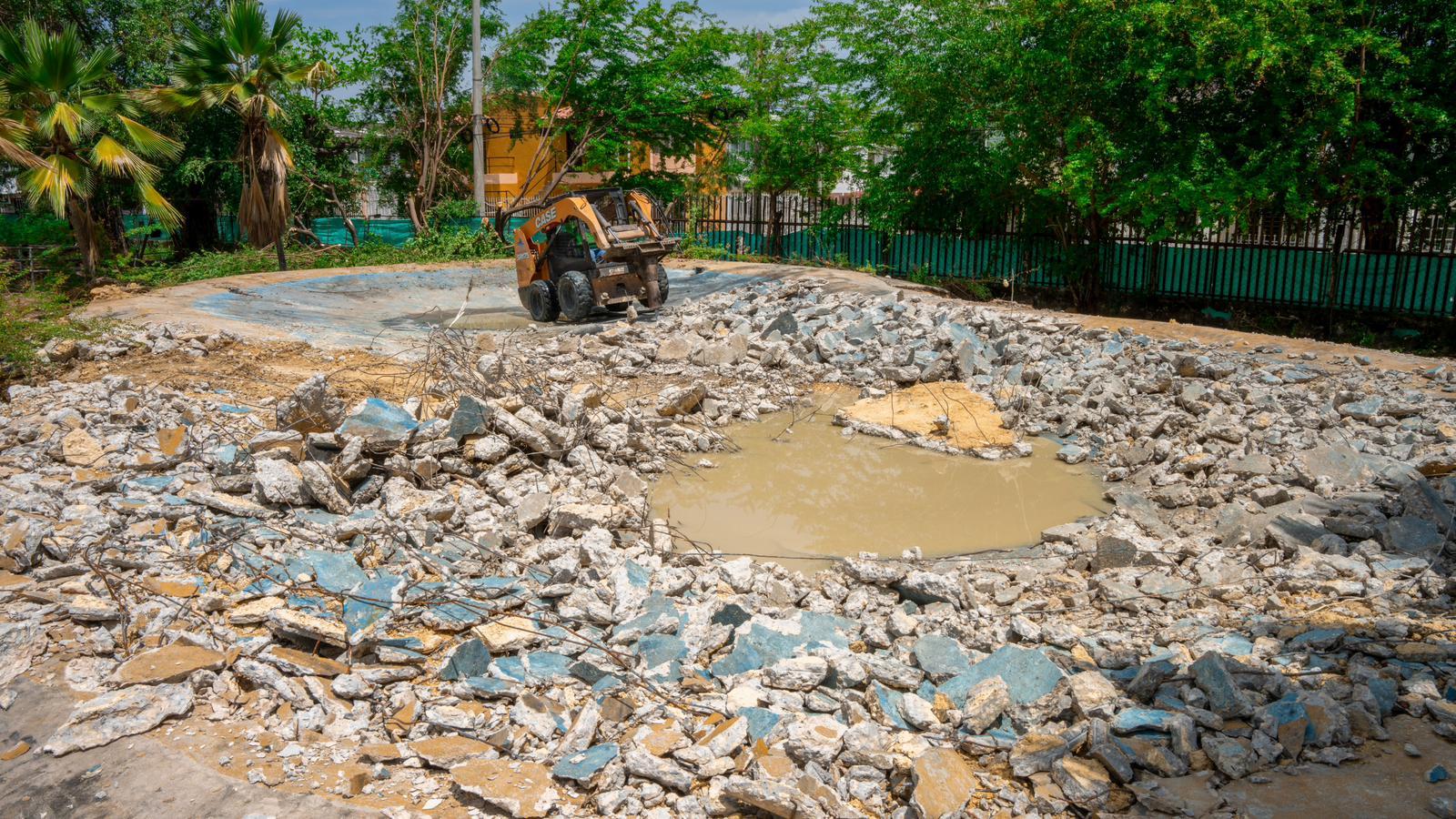 Se iniciaron las excavaciones de los cimientos para la construcción de la cancha múltiple y a partir de esta semana se inicia el retiro del material de demolición de las estructuras existentes.