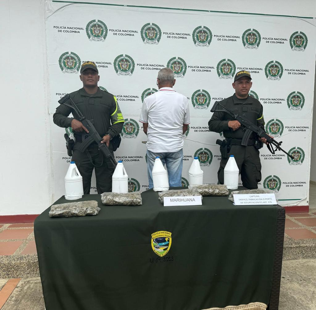 El ayudante de 68 años de edad, fue capturado y dejado a disposición de la autoridad competente por el delito de tráfico, fabricación o porte de estupefacientes, a espera que un juez de la república defina su situación judicial.