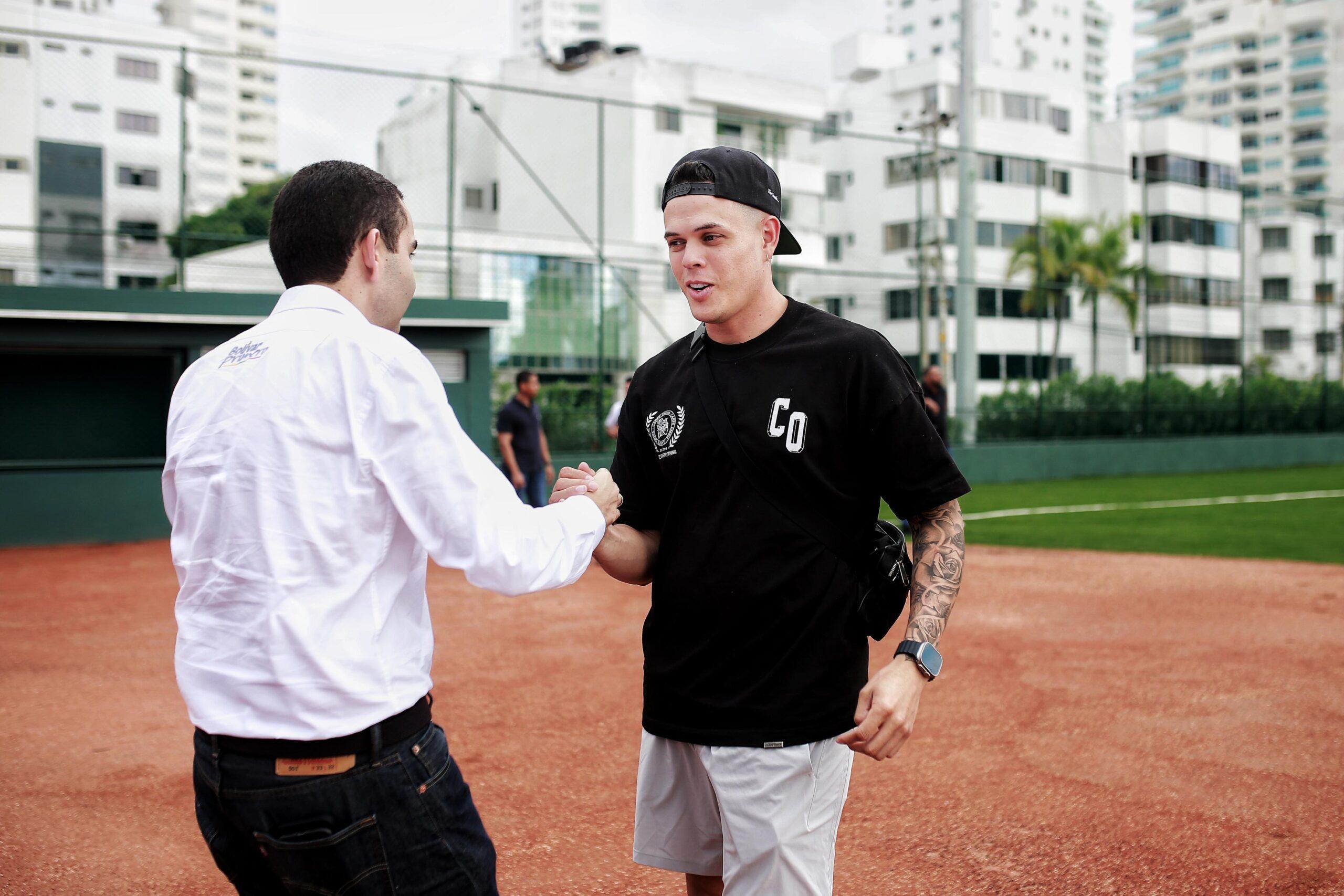 Mientras recorría el escenario, el mandatario contó que esperan la llegada de varios grandes ligas de Colombia y del mundo que participarán en esta gran inauguración con un juego de Urshela y sus amigos.