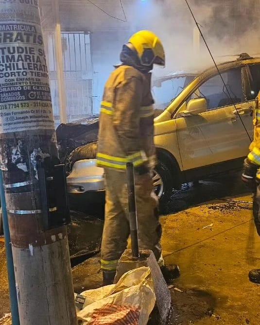Bomberos atiende emergencia de quema de camioneta en el barrio San Pedro
