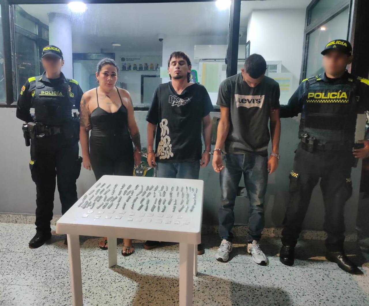 Durante el operativo fueron capturados alias ‘Paola’, ‘el Nelson’ y ‘el Brayan’, de 43, 25 y 26 años respectivamente, naturales de la ciudad de Bogotá y el País de Venezuela. Durante el procedimiento se les incautaron 30 dosis de cocaína y 80 cigarrillos de marihuana.