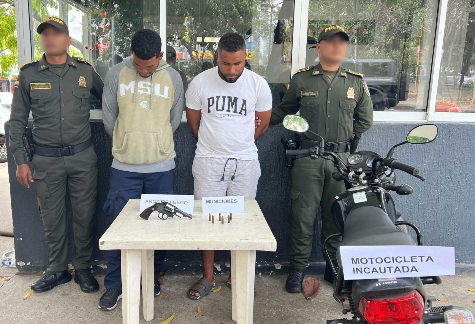 A bordo de la motocicleta iban dos personas, alias “Edwin” y “Juanse”, de 30 y 26 años respectivamente, a quienes se les practicó un registro personal, encontrándoles en su poder un revólver calibre 38 y seis cartuchos de igual calibre, sin percutir.
