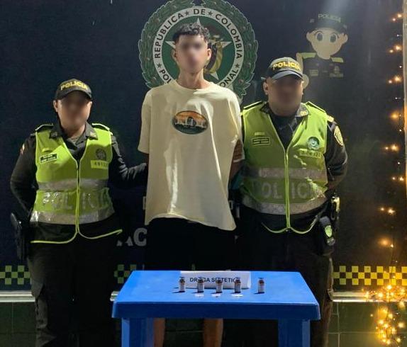 En controles y registros desplegados por uniformados de la estación de Policía de la Terminal de Transportes en Cartagena, se intercepta a un ciudadano conocido como “el Jurgeen”, de 20 años, quien se bajaba de un bus intermunicipal proveniente de la ciudad de Barranquilla. El indiciado llevaba un bolso en sus hombros y al ser requerido por los uniformados se tornó nervioso, por lo que fue necesario revisar su contenido, encontrando cinco (5) frascos de Ketamina, 10 dosis de éxtasis (endi) y 10 dosis de tusi.