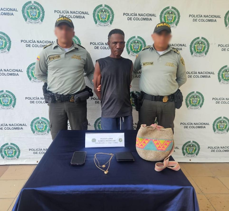 Los funcionarios actuaron de manera inmediata, logrando capturar al responsable en flagrancia, es decir, justo en el momento en que se cometía el delito; durante el procedimiento, se le encontró al sujeto un bolso que en su interior contenía dos cadenas, dos anillos de oro y documentos, avaluados en 12.000.000 de pesos, que posteriormente fueron entregados a las víctimas.