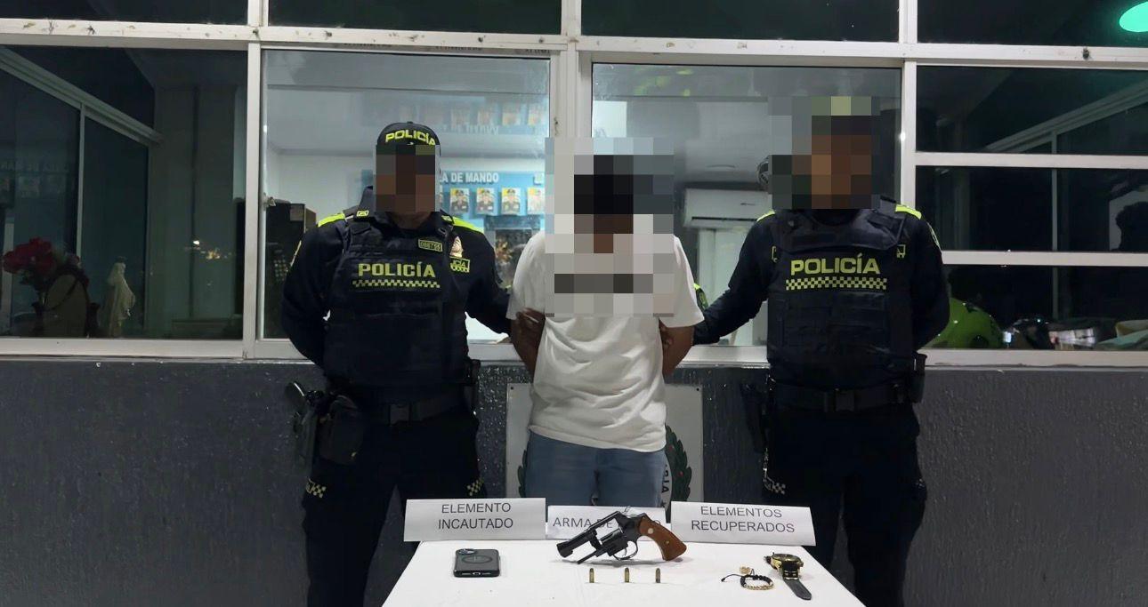 De acuerdo con las autoridades, el procedimiento se dio en medio de planes de control contra el hurto. Tras recibir la alerta, patrullas de vigilancia iniciaron una persecución que permitió interceptar a alias ‘El Jeferson’, de 18 años, quien minutos antes habría intimidado a un ciudadano con un arma de fuego para despojarlo de una manilla de oro, un anillo de oro y un reloj de alta gama, elementos avaluados en más de seis millones de pesos.