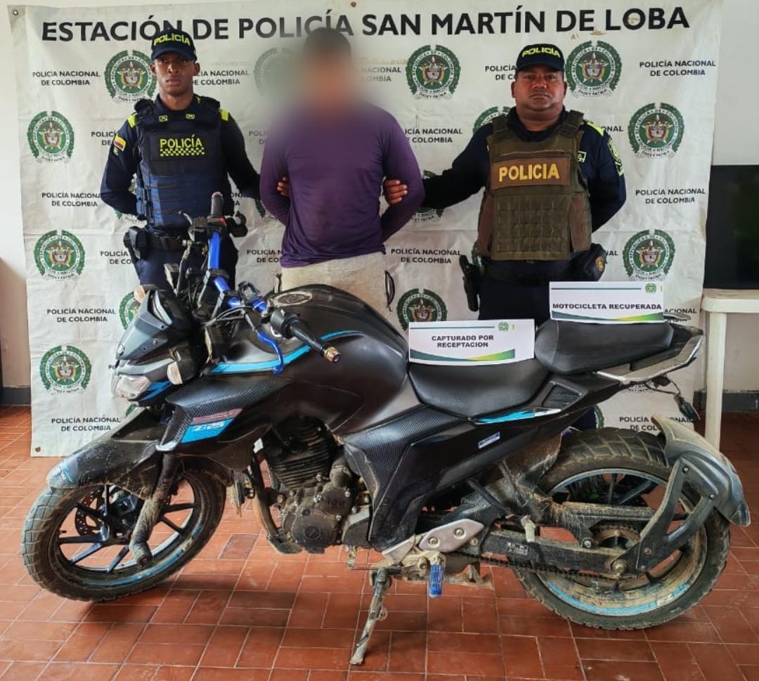 El procedimiento se llevó a cabo en la calle El Mango, sector comercial del municipio de San Martín de Loba, donde patrullas de vigilancia realizaban actividades de registro y control. Al verificar la motocicleta en el dispositivo PDA, los unifromados confirmaron que el automotor figuraba como robado en hechos ocurridos el 26 de enero de 2022 en el municipio de Girón, departamento de Santander.