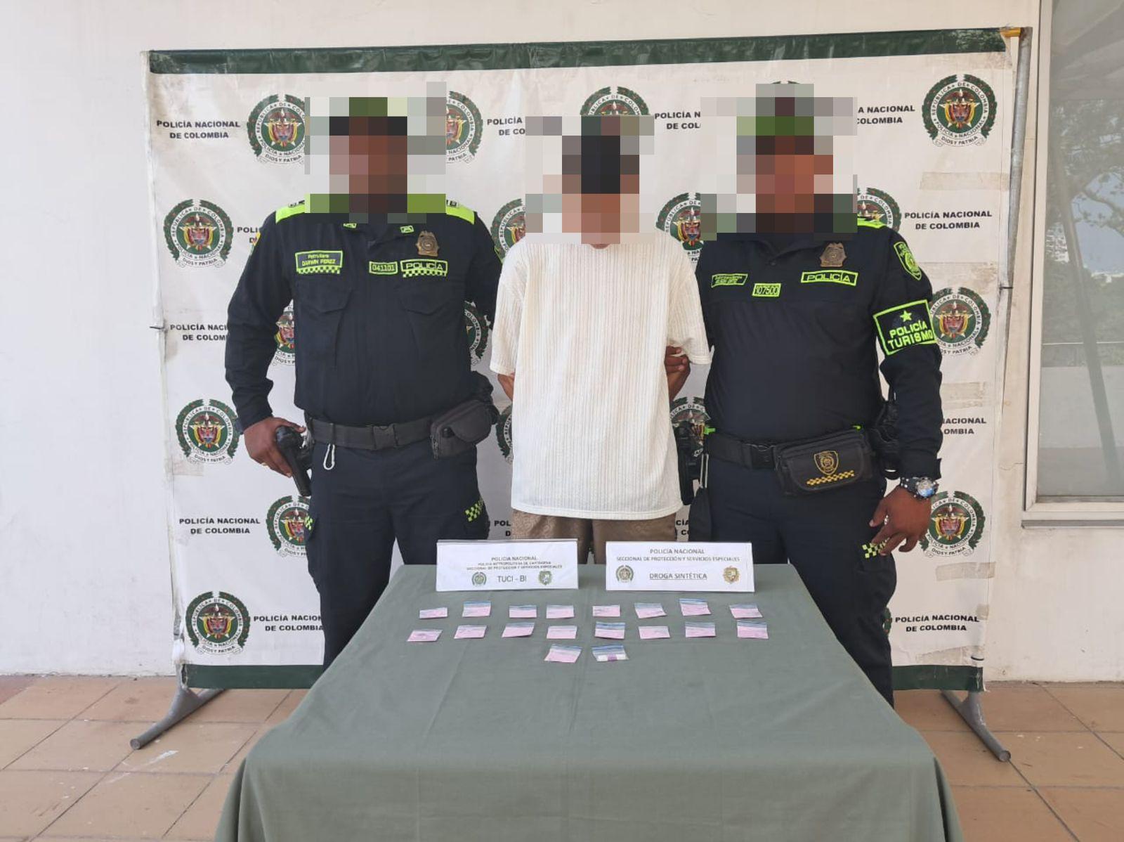El capturado fue identificado con el alias de ‘Juanse’, de 30 años, natural de Neiva (Huila). Durante el procedimiento, las autoridades le hallaron en su poder 17 dosis de Tusi y tres pastillas de éxtasis, cuyo valor en el mercado ilegal superaría los tres millones de pesos.