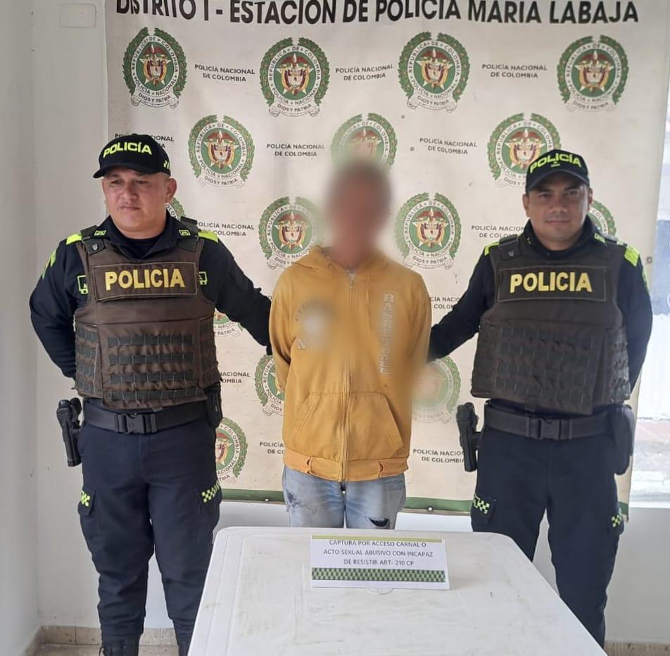 El detenido quedó a disposición de la Fiscalía General de la Nación por el delito de acceso carnal abusivo con persona incapaz de resistirse. La mujer está siendo examinada por especialistas.