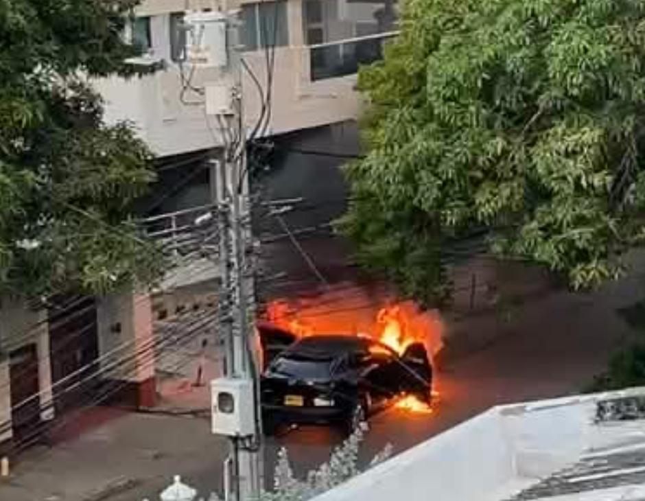 En horas de la tarde de este martes, un vehículo se incendió en plena calle Real del barrio Manga, a la altura del semáforo de Carulla.