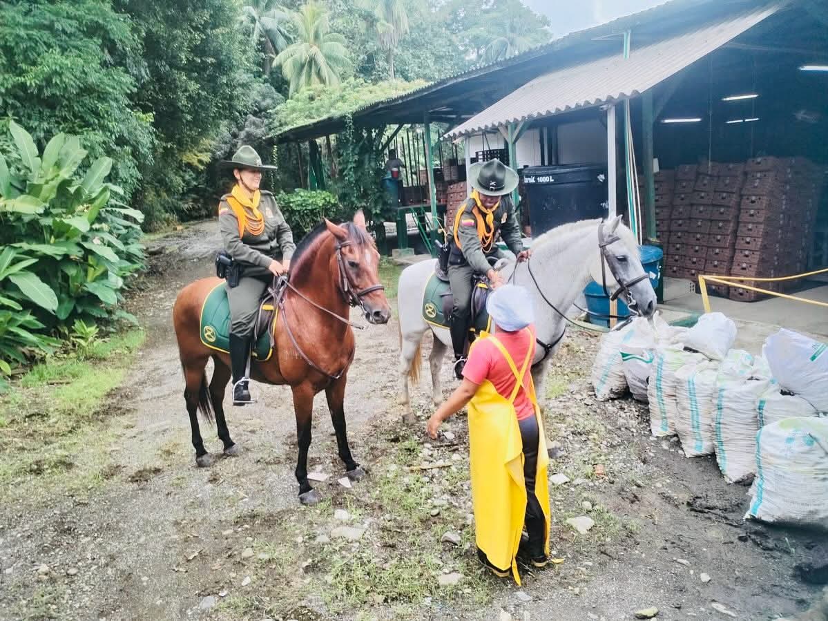 Sus miradas, atentas y serias, registran cada detalle del camino, cada movimiento sospechoso. Son la presencia visible de la Policía Nacional de Colombia en zonas rurales de Bolívar, un símbolo de autoridad y orden. El sonido de los cascos sobre la piedra es constante, un ritmo familiar para los campesinos que ven en ellos una ayuda cuando la necesitan.