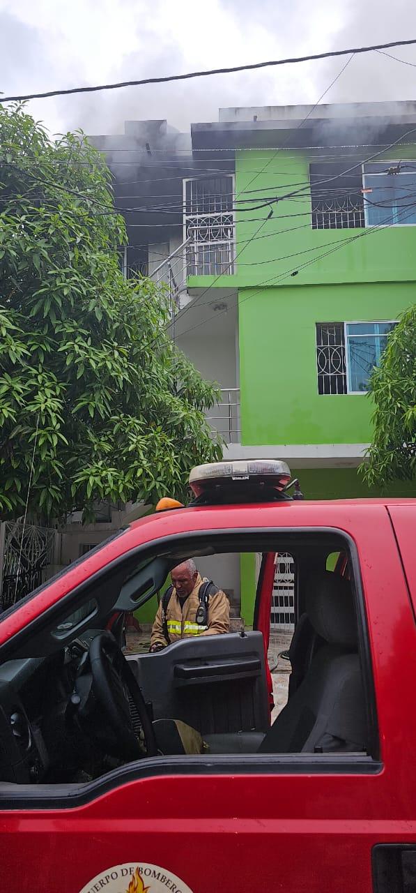 En un video quedó registrado cómo el Cuerpo de Bomberos de Cartagena respondió, rápidamente, a un incendio reportado en una edificación de tres plantas ubicada en el barrio Villa Grande 1.