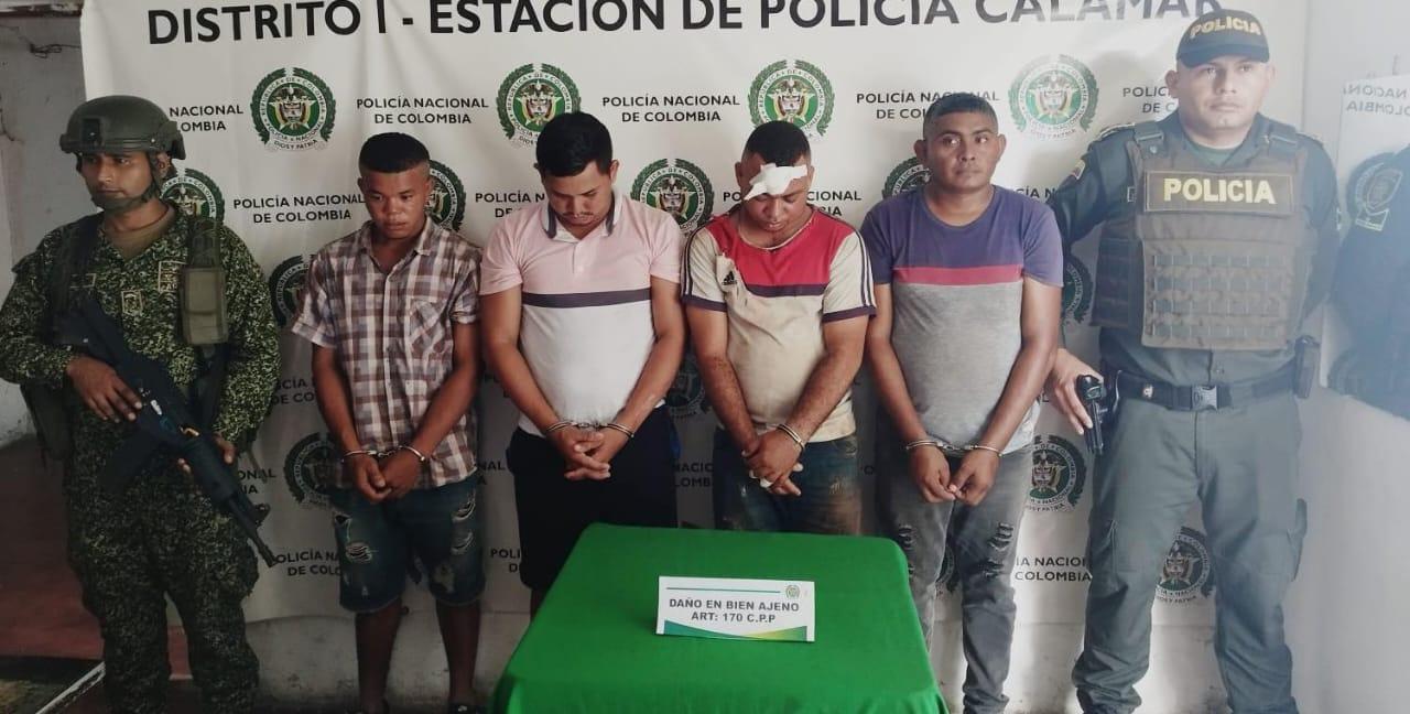 La Policía Nacional a través de las patrullas de vigilancia en coordinación con la Armada Nacional, lograron la captura en flagrancia de cuatro presuntos delincuentes por el delito de daño en bien ajeno.