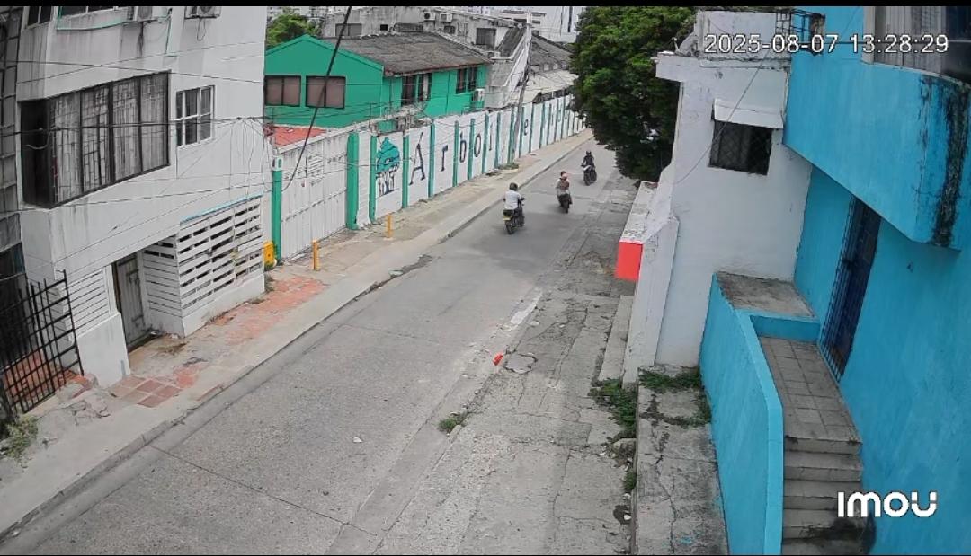 Las imágenes, captadas por una cámara de seguridad, muestran a un individuo vestido con un suéter blanco transitando por la avenida Pedro de Heredia, en sentido Centro–Bazurto. A la altura del Callejón de Mesa, el sujeto observa cómo una moto desciende por la vía y le da paso. Apenas la pareja avanza, el hombre comienza a seguirlos. Al mismo tiempo, desde la dirección contraria, aparece otro motociclista que se cruza en su camino, aparentemente con intención de provocar un choque.