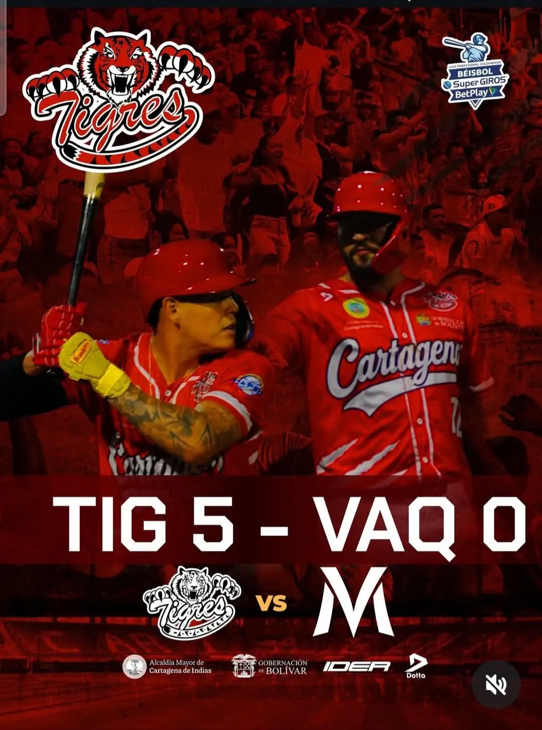 Tigres de Cartagena ratificó su gran momento y blanqueó 5 carreras por 0 a Vaqueros de Montería, hilvanando su tercera victoria consecutiva de la temporada 2025-2026 y quedando a solo medio juego del segundo lugar.