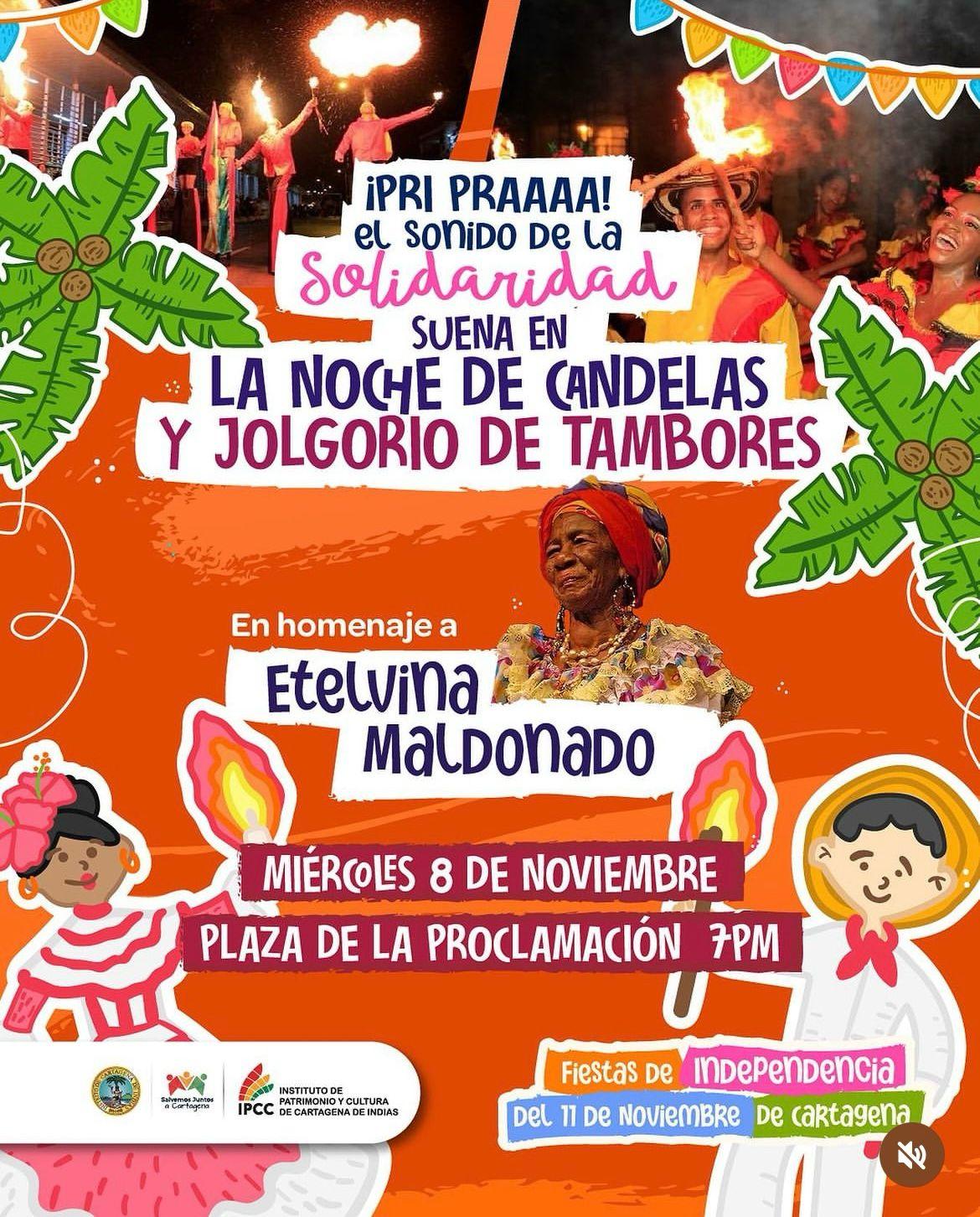 Uno de los eventos más representativos de las Fiestas de Independencia del 11 de Noviembre se realizará hoy en la Plaza de la Proclamación, a partir de las 7:00 de la noche. Se trata de la tradicional Noche de Candelas y Jolgorio de Tambores y Cantadoras, organizada por la Alcaldía de Cartagena, a través del Instituto de Patrimonio y Cultura de Cartagena (IPCC).