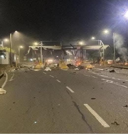 En video quedó registrado a lo lejos el momento en que explota el peaje de Lomitas, en Villas del Rosario, Norte de Santander.