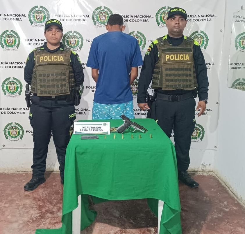 Gracias a la información suministrada por la comunidad, el Modelo Nacional de Vigilancia Comunitaria por Cuadrantes de Calamar, atraparon a un hombre que presuntamente se encontraba realizando disparos al aire en el barrio Abajo de dicho municipio.