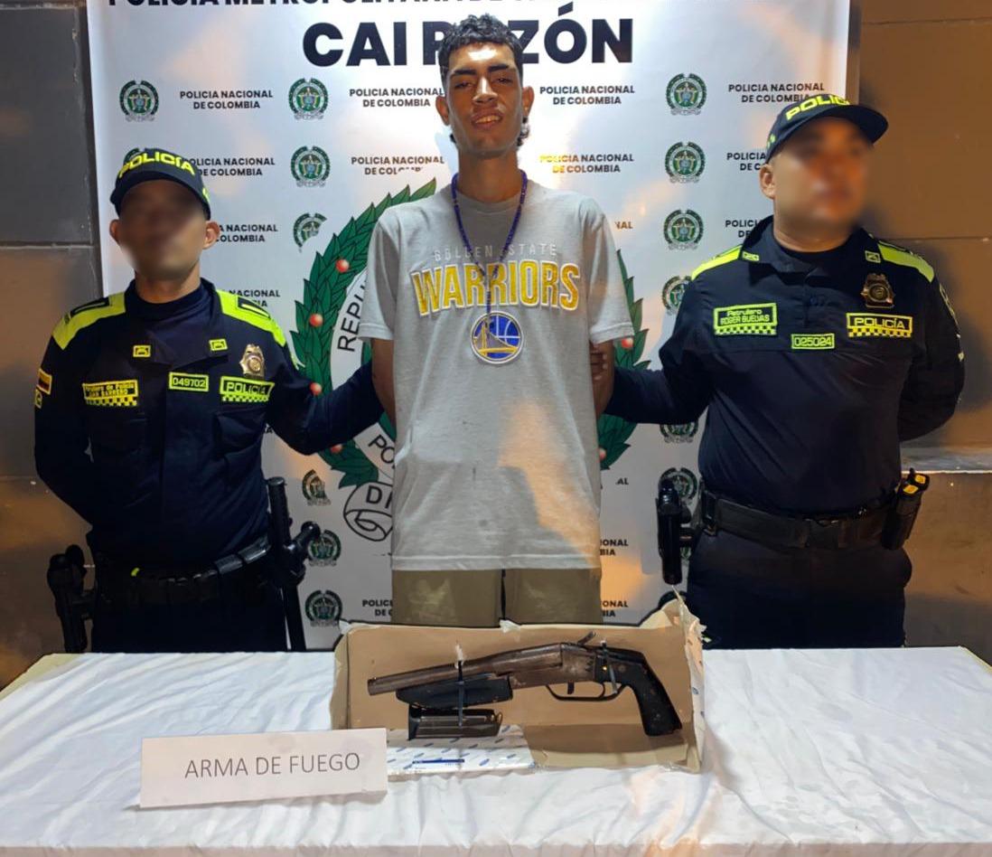 En planes adelantados contra el hurto, uniformados de la Metropolitana de Cartagena lograron interceptar y capturar en las últimas horas a un sujeto, con un arma de fuego en el barrio El Pozón.