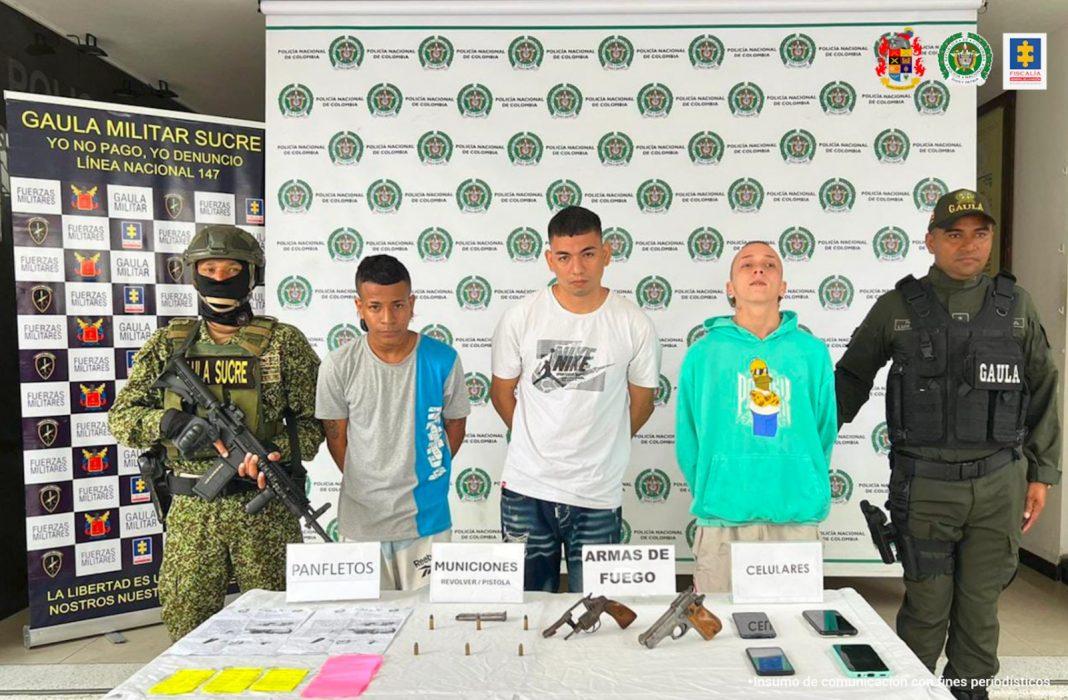 Los indiciados habrían exigido motocicletas a propietarios de establecimientos comerciales a cambio de no atentar contra su integridad física. Les hallaron panfletos y armas de fuego.