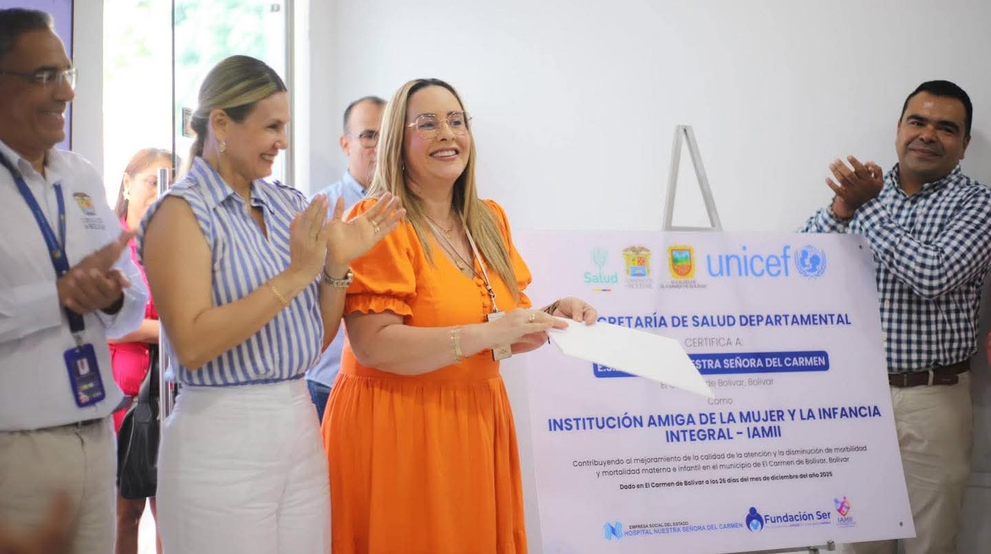 La ESE Hospital Nuestra Señora del Carmen, en articulación con su operador externo Fundación SER, recibió oficialmente la certificación como Institución Amiga de la Mujer y la Infancia Integral (IAMII), otorgada por la Secretaría de Salud Departamental, un reconocimiento que ratifica el cumplimiento de estándares de calidad en la atención materno-infantil y el compromiso institucional con la salud y el bienestar de las familias del territorio.