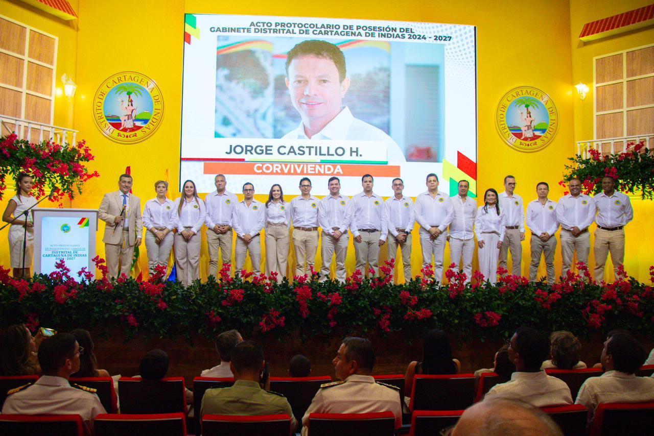 En medio de la ceremonia, encabezada por el alcalde mayor de Cartagena, Dumek Turbay Paz, tomaron posesión como nuevos integrantes del gabinete distrital los siguientes funcionarios: