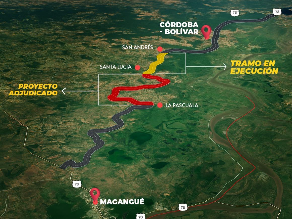 Se trata del trazado que va de los corregimientos de La Pascuala (Magangué) a Santa Lucía (Córdoba).