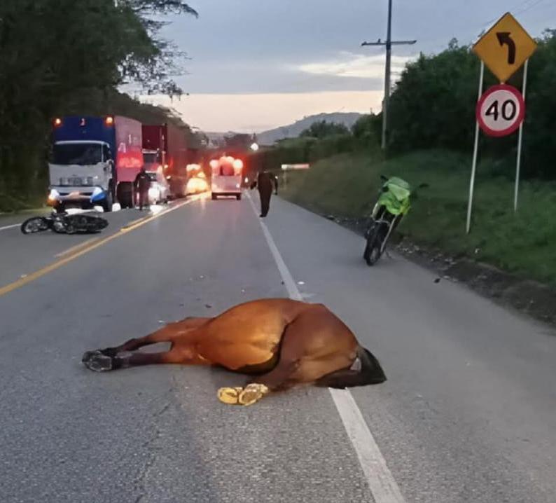 De acuerdo con versiones de testigos, la motocicleta en la que se movilizaban las víctimas colisionó de manera repentina contra el animal, que se encontraba sobre la carretera.