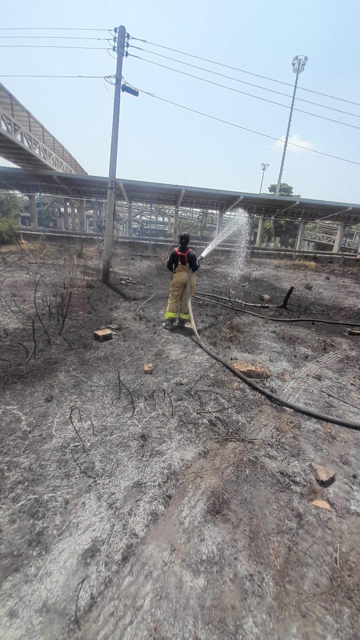En horas de la tarde de ayer, un incendio forestal de considerable magnitud se registró en un terreno ubicado junto al Patio Portal de Transcaribe, en Cartagena. Las altas temperaturas y los fuertes vientos contribuyeron a que las llamas se propagaran con rapidez, generando alarma entre los habitantes y trabajadores de la zona.