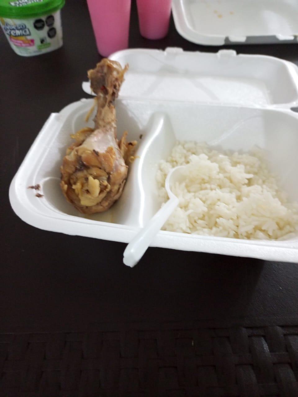Cena: pollo pasado por agua y porciones mínimas de arroz.