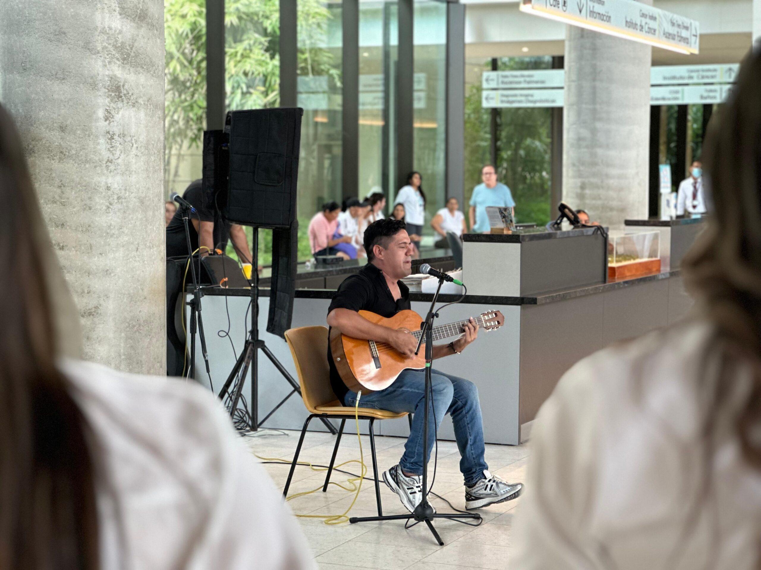 Durante su visita, Luis K interpretó algunos de sus éxitos más emblemáticos como «Ahora» y «En el día 300», entre otras canciones que emocionaron al público del Hospital y llenó de alegría y esperanza a los corazones de pacientes hospitalizados.
