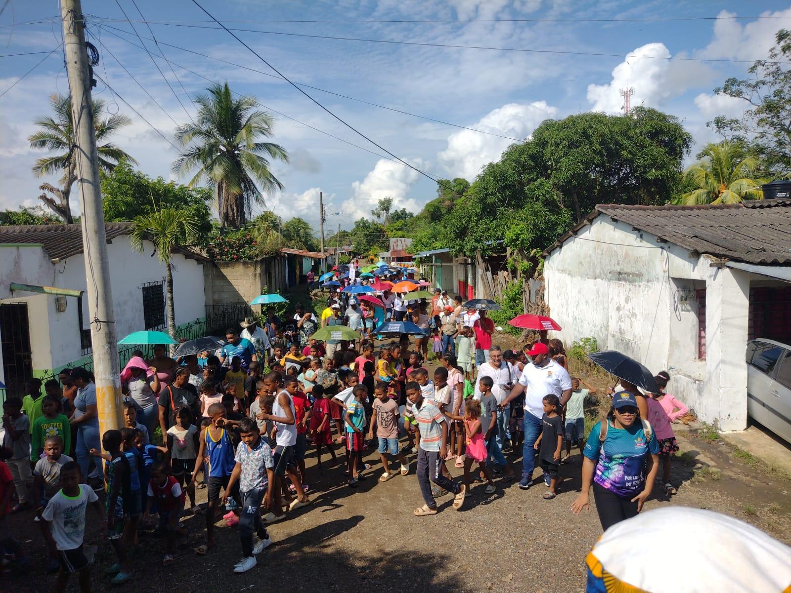 En el marco de una jornada institucional con una gran oferta de servicios, en el corregimiento de Primero de Julio, se realizó una marcha por las principales calles, contra la violencia a las mujeres y niñas.