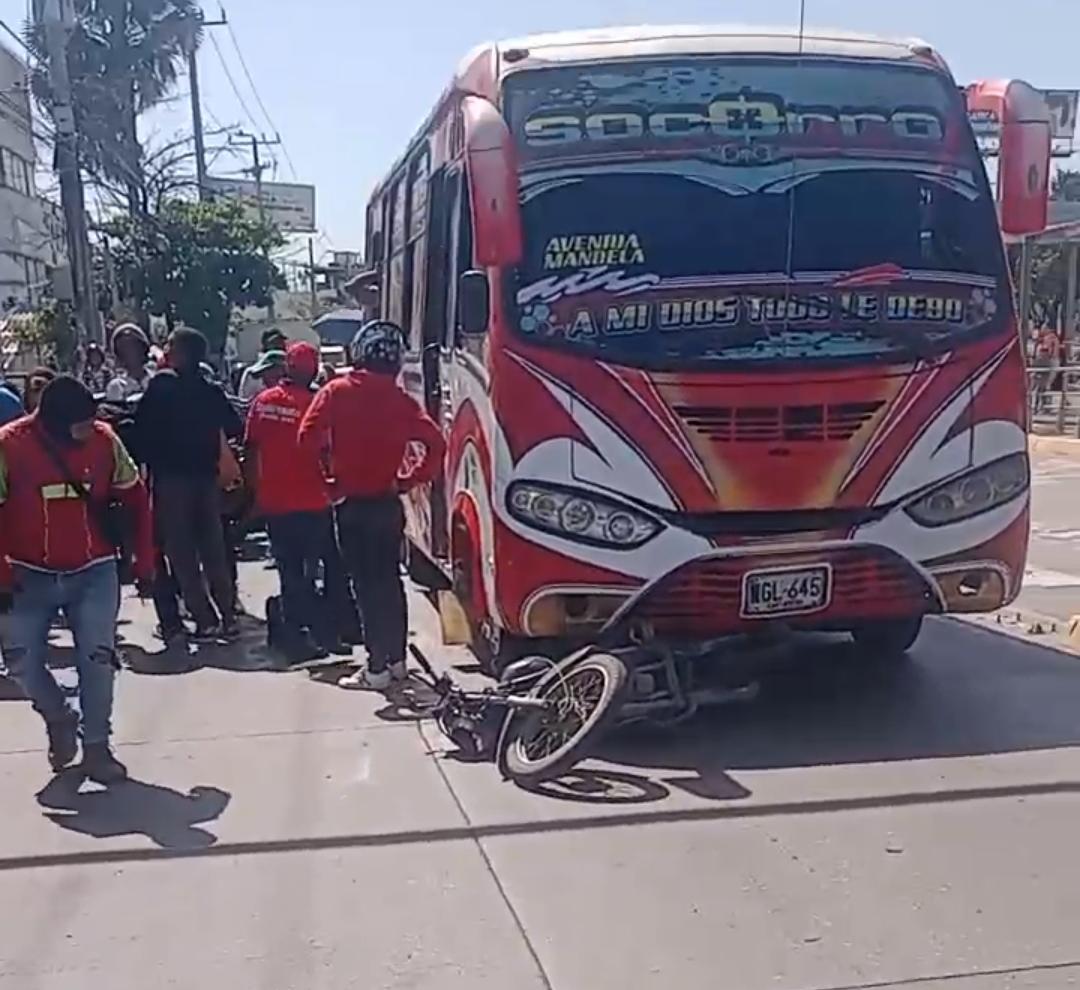 Según testigos, el conductor de una buseta de servicio público sería el presunto responsable del siniestro vial, luego de arrollar al motociclista, quien fue auxiliado y trasladado de urgencia a un centro asistencial.