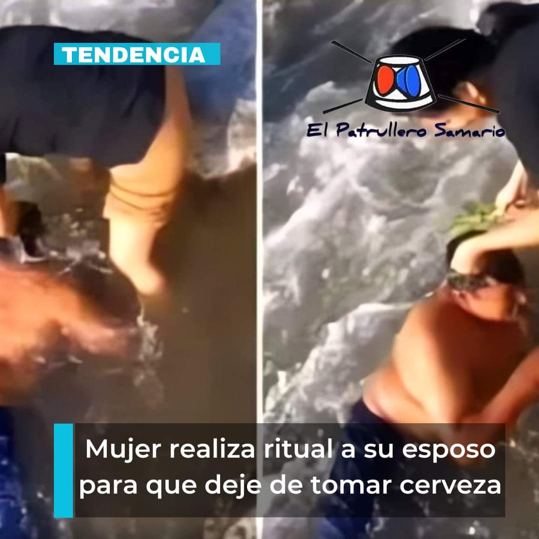 En las últimas horas, se hizo viral un video en donde se observa a una mujer sumergir en las aguas de un río a su esposo para que, segun ella, intentar quitarle las ganas de tomar cerveza con sus amigos.