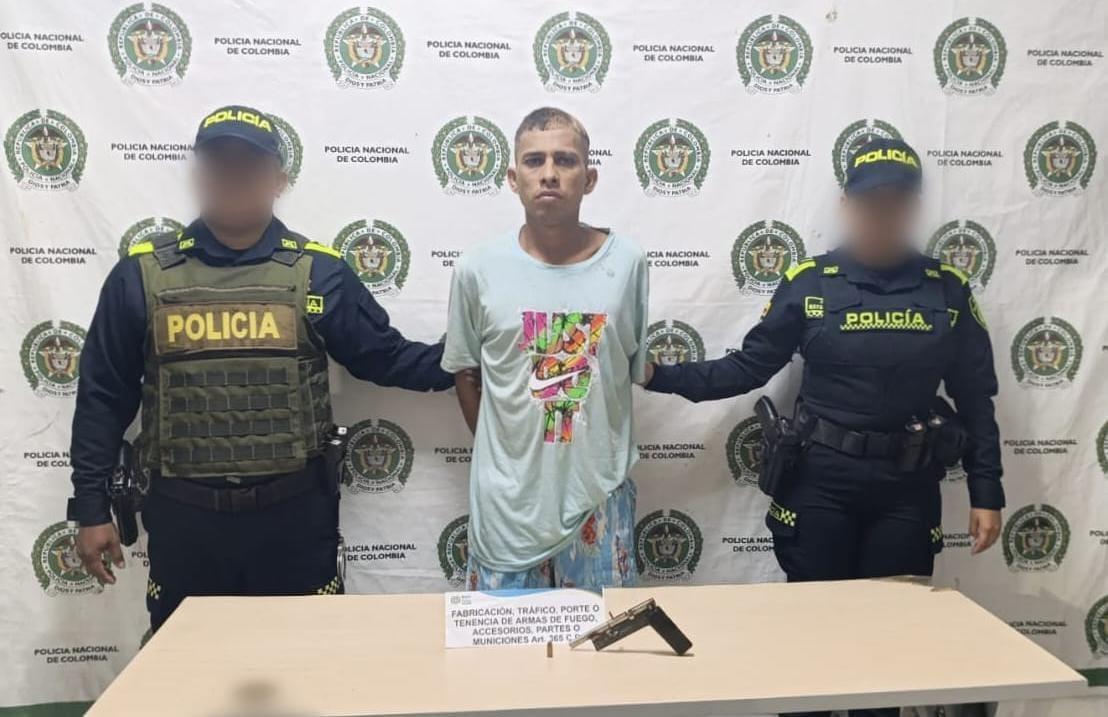 La captura se llevó a cabo en el barrio José María Córdoba, justo al momento de bajarse de una motocicleta con actitud sospechosa. Tras ser requerido por los uniformados, le hallaron un arma de fuego tipo artesanal, con 1 cartucho calibre 9 milímetros. Tras la incautación, le dieron a conocer los derechos como persona capturada.