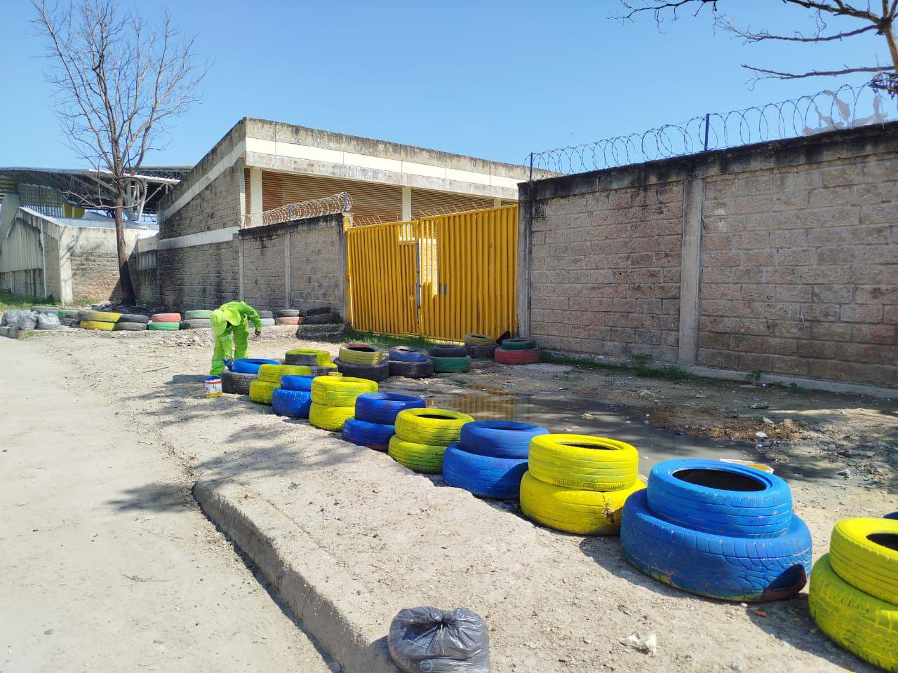 Durante la actividad, se llevó a cabo una limpieza general del área y una intervención mediante la instalación de llantas reutilizadas, a las que se les está dando una nueva vida útil. Además, se pintaron las zonas intervenidas para transformar el espacio en un entorno más amable con el medio ambiente y visualmente más atractivo para quienes transitan o habitan en sus cercanías.