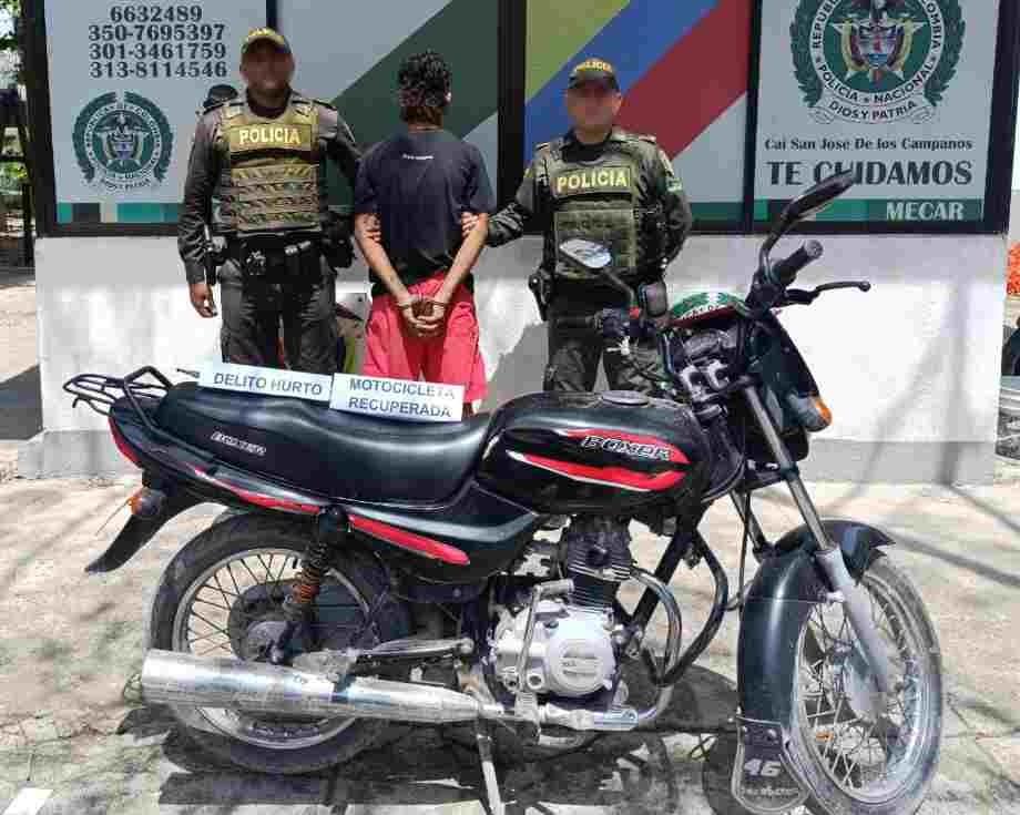 De igual forma, fue capturado ‘el Yesid’, de 26 años de edad, quien aprovechando el factor oportunidad, hurtó una motocicleta marca Boxer. Una llamada a la línea 123, permitió realizar un Plan Candado y recuperar la motocicleta.