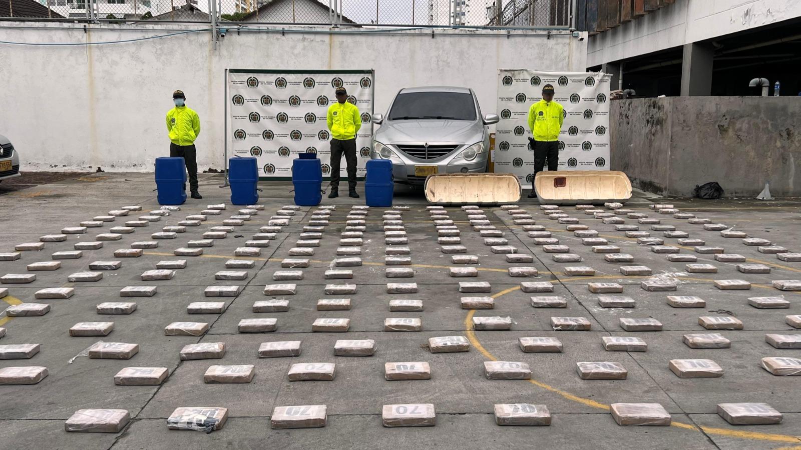 Policía incauta 239 kilos de cocaína en un parqueadero del barrio Manga