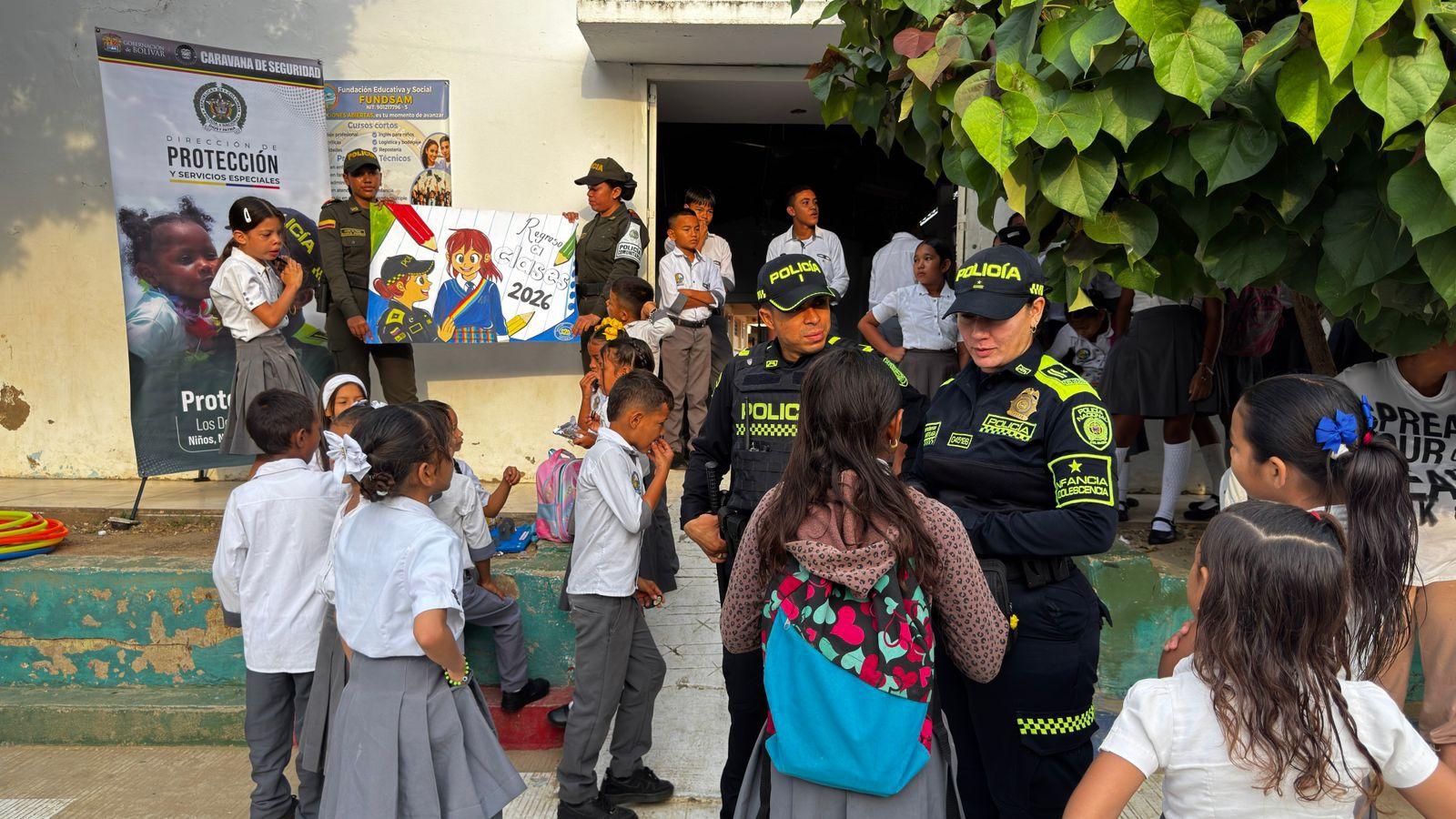 El coronel Diego Fernando Pinzón Poveda, Comandante del Departamento de Policía Bolívar, manifestó que estas acciones hacen parte del compromiso institucional por garantizar espacios seguros en el retorno a clases luego de la Semana Mayor, brindando tranquilidad a la comunidad educativa.