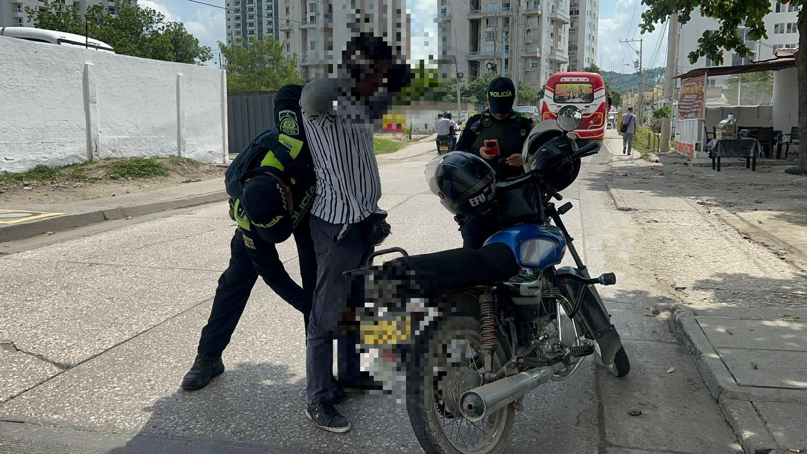 Mediante planes de registro y control en el sector Anillo Vial, a la altura del corregimiento de La Boquilla, fue capturado un sujeto de 36 años, conocido como “el Cristian”, quien fue sorprendido movilizándose en una motocicleta marca Boxer de placa GCF47G, datos alfanuméricos que no coincidían con los registrados en la licencia de tránsito.