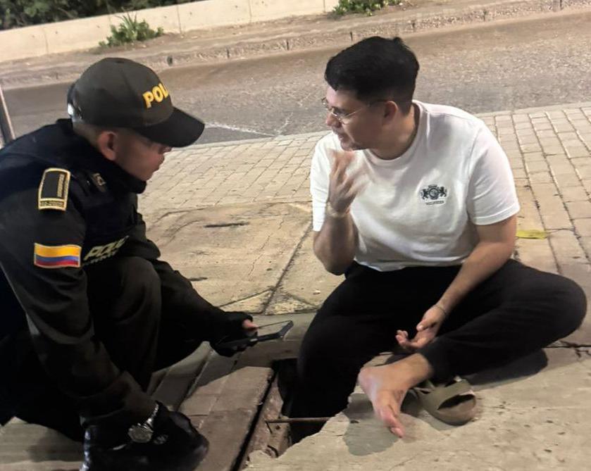 Según el propio líder comunal, mientras caminaba por la acera, no se percató del daño en la tapa del registro y terminó con la pierna encajada. “Ahí estuve casi una hora, hasta que llegó la ambulancia y lograron liberarme”, narró Rico, visiblemente afectado, aunque sin lesiones de gravedad.