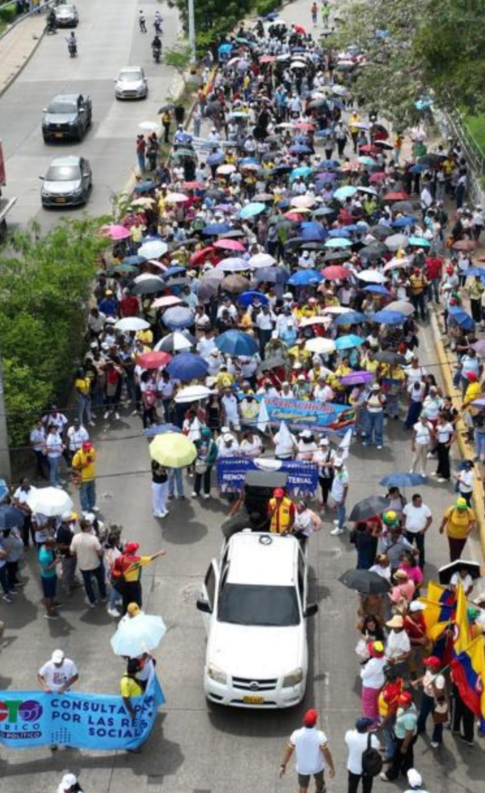 En horas de la mañana de este miércoles, se registra una marcha de varios sindicatos que partieron desde el colegio INEM y avanzan sobre la Transversal 54, en sentido Bomba El Amparo – Contecar.