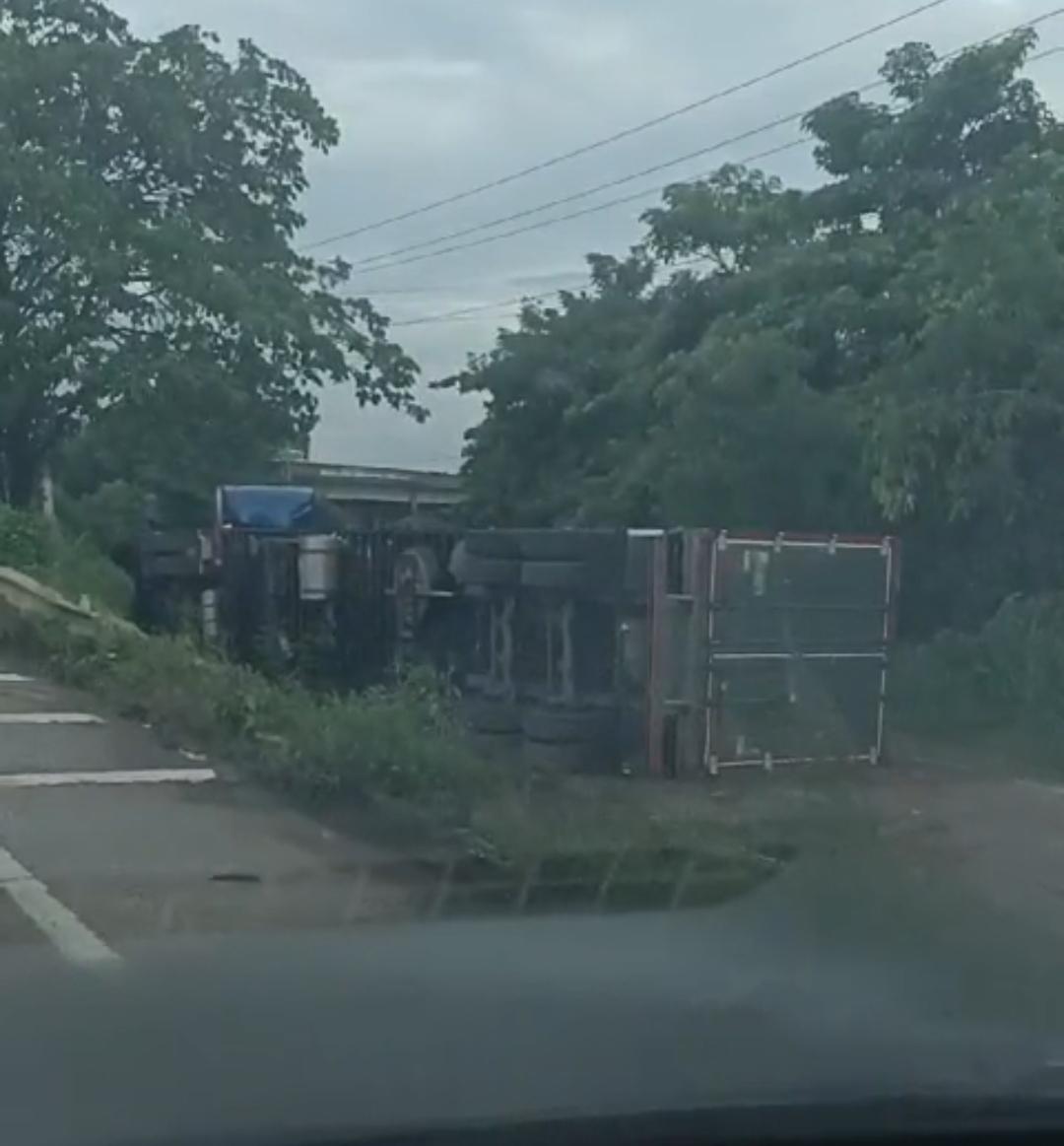 Se volcó tractomula en el puente, en inmediaciones de Mamonal