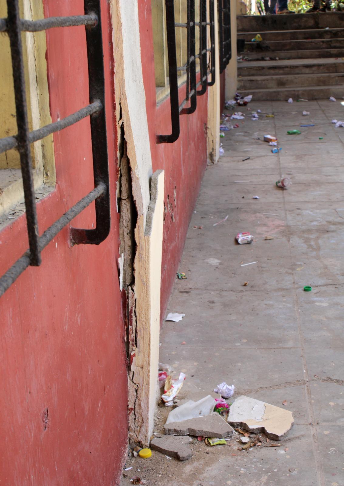 Los puntos más críticos se ubican, según informe técnico, en algunas de las columnas de la fachada del colegio lo que hace necesario, de manera urgente, evacuar las aulas de grado Quinto que están situadas en esta zona y eventualmente también dejaría de funcionar el salón de eventos San José, ubicado en el tercer piso del colegio.