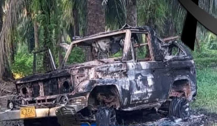 En el lugar también fue hallado completamente incinerado el vehículo en el que se transportaba, hecho que es materia de investigación por parte de las autoridades.