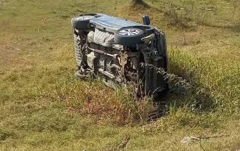 Una camioneta Honda CR-V, en la que se movilizaban dos personas, terminaron accidentados por evitar impactar con el animal. El automotor se salió de la vía y terminó volcado en una finca.