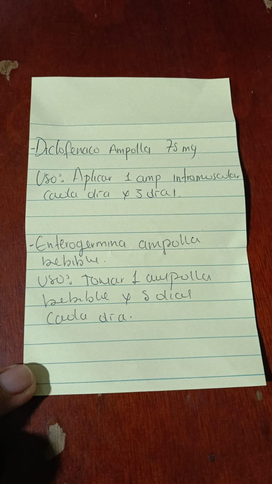 Finalmente, una de las doctoras le entregó la prescripción en una hoja de libreta y le indicó que podía ir a la droguería contigua para comprar una ampolla, y luego volver para que se la aplicaran como un “favor”.